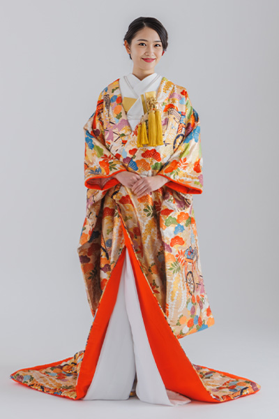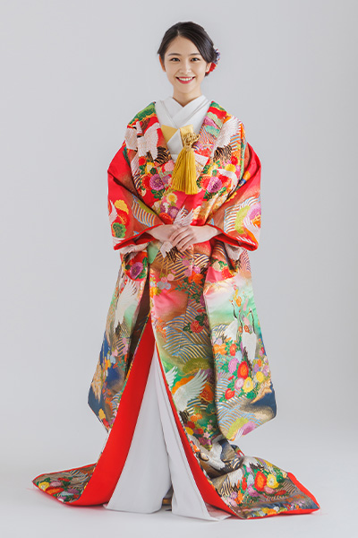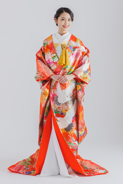 神戸店 色打掛 衣装1点につき +16,500yen(税込)で 神戸店の色打掛からもお選びいただけます。 神戸店の衣装をご試着いただく際は、1回4,400yen(税込)を頂いております。 ?色打掛の種類について