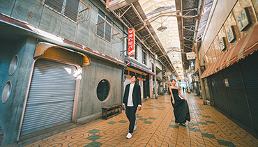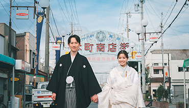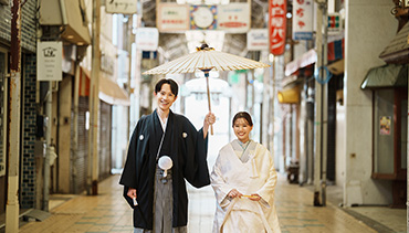 商店街や建物を生かしたレトロでモダンな雰囲気は、和装・洋装 どちらにもピッタリです。