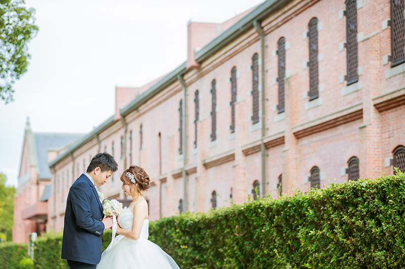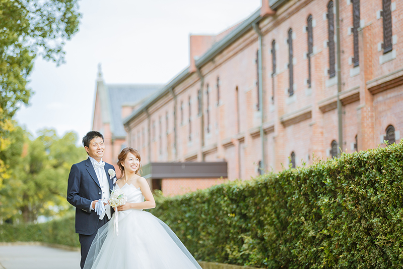 本日は 「洋装+和装ロケーション前撮りプラン」を選ばれた新郎新婦様のお写真から「洋装」での
