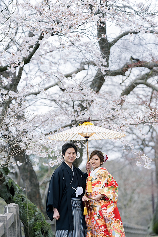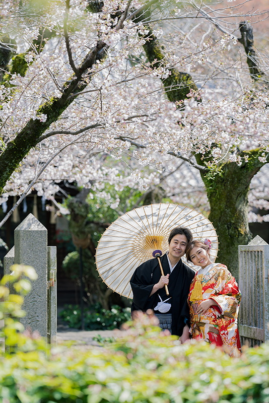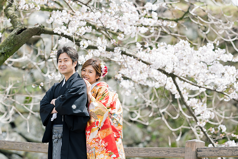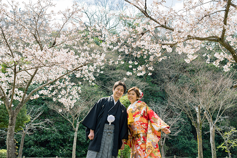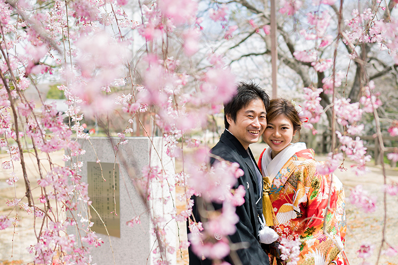 桜がお写真に加わると、お二人の晴れ姿も