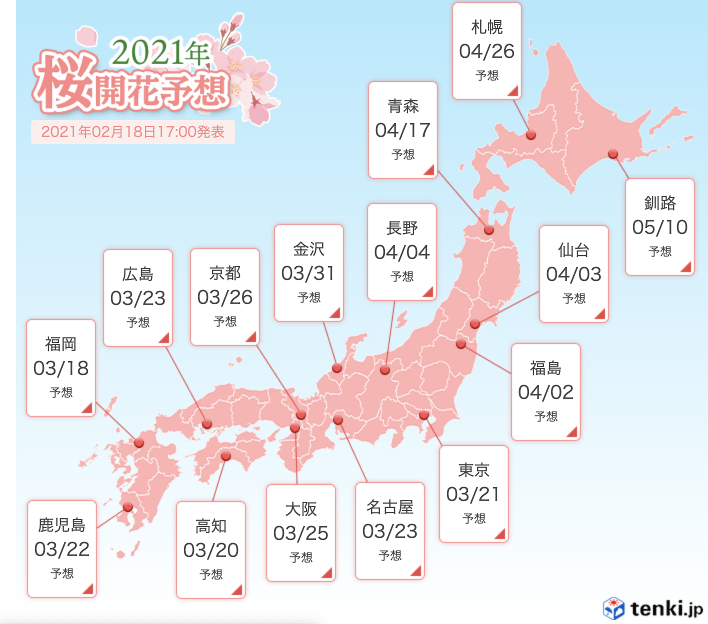 今年は、[ 全国的に 例年より少しだけ早い開花に