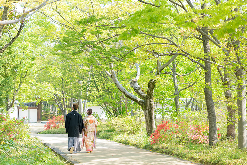 緑も加わって、晴れ姿のお二人が