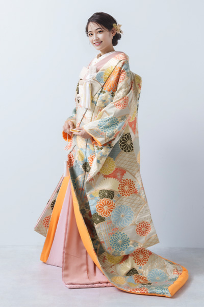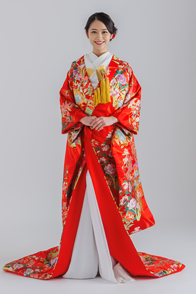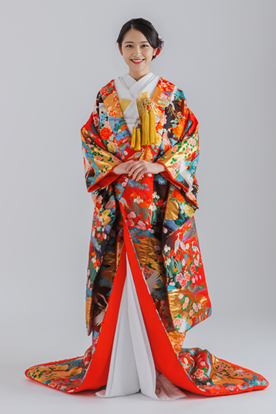 神戸店 色打掛 衣装1点につき +16,500yen(税込)で 神戸店の色打掛からもお選びいただけます。 神戸店の衣装をご試着いただく際は、1回4,400yen(税込)を頂いております。 ?色打掛の種類について