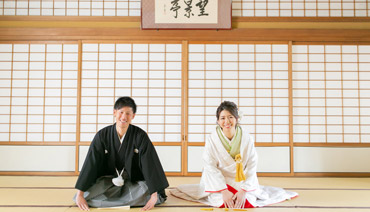 庭の眺望を意識した開放的な作りで、室内・日本庭園共に撮影が可能です。