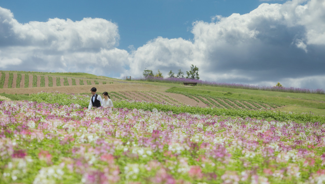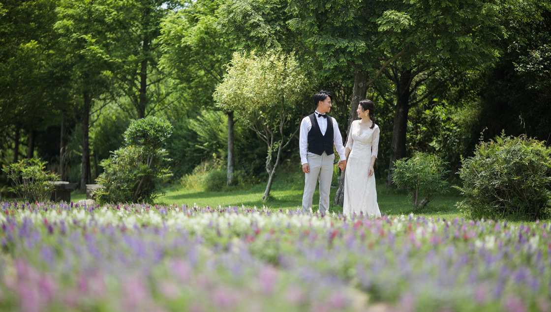 季節の花々での撮影も魅力です。