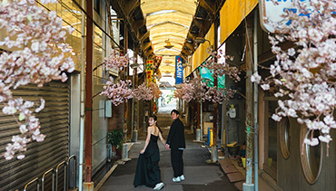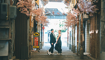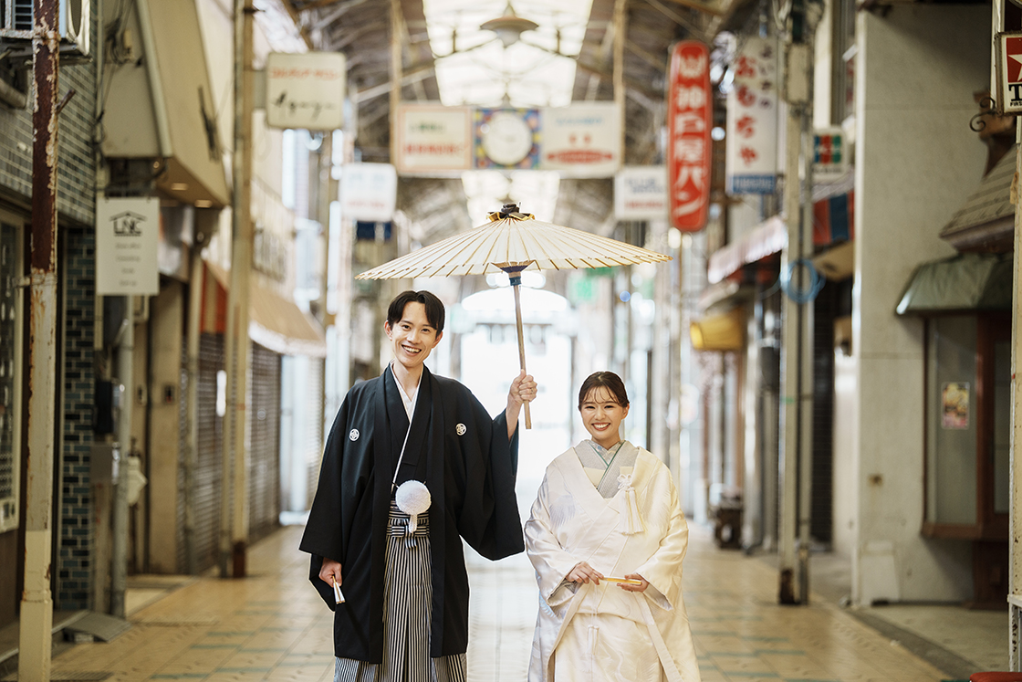 商店街や建物を生かしたレトロでモダンな雰囲気は、和装・洋装 どちらにもピッタリです。