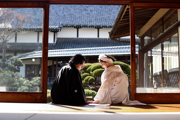 立派な庭園が魅力。一枚板の石橋や立石の石組、大きな石灯籠にソテツなどなど、迎賓に相応しい豪華さ。姫路の知られざる日本庭園です。